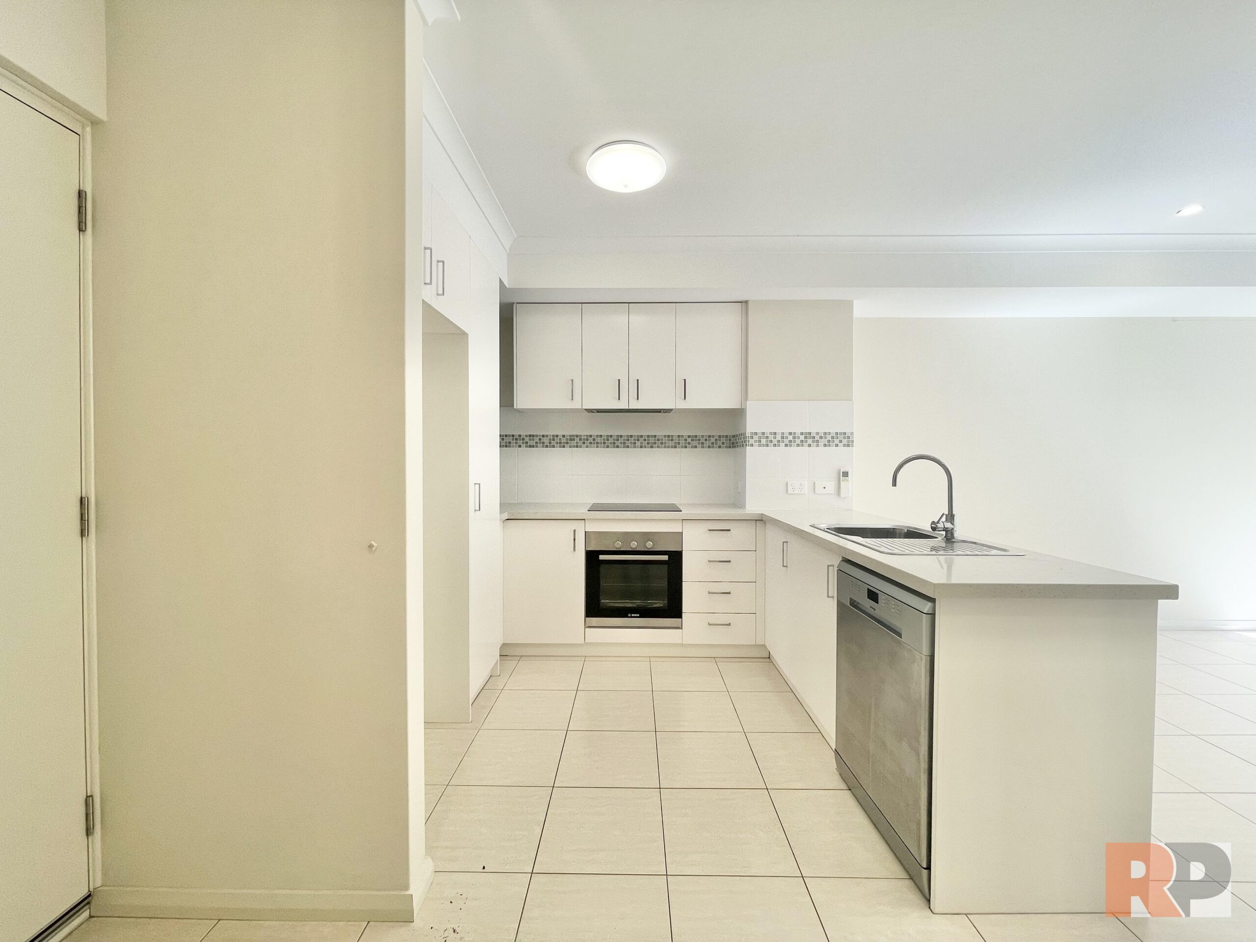 • Modern kitchen complete with overhead cupboards, electric appliances and a dishwasher